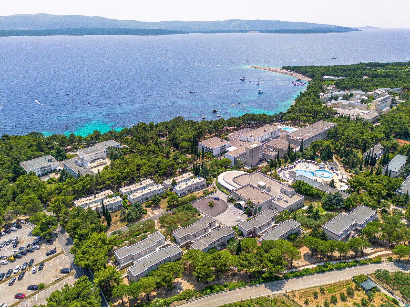 Hotel se nalazi na samo 150 metara od plaže sa finim šljunkom. Plaža Borak je udaljena oko 5 minuta vožnje, a plaža Zlatni rat je udaljena oko 600 metara. Aerodrom Split je udaljen oko 80 kilometara.